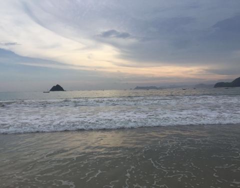 这是一个非常适合冲浪的海滩,160元人民币(教练+滑板+90分钟),带孩子去,玩的不亦乐乎!景色也很美,包车过来的。