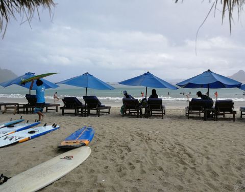 柔细的白沙,广阔的海滩伴着周围小岛的美景,这里并不拥挤。这里真的是一个很适合学冲浪的地方,浪约1m左右高,此地有相当多教冲浪的店家,也有很多观光客来到此地学冲浪, 这边的浪不会太大 。