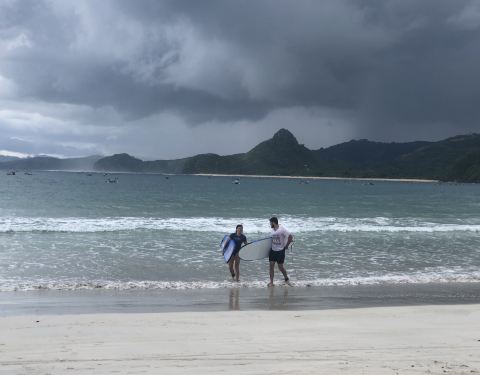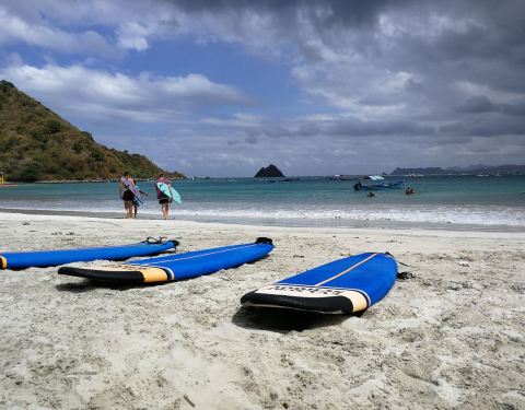 selong沙滩️适合冲浪初学者来,在龙目中文旅行社预定了selong一对一的教学,教练很负责任,从instructions到后来的实战练习,都是紧跟着我们。沙滩的沙子不太好,临近浅滩,真的是很扎脚,容易划伤。 经历了“摸爬滚打”,索性还是初步掌握了点冲浪的技巧,还是有点小成就感的。浪头的话对于初学者来说有点大,对于怕水的来说有点难度,但放松,本着海水吃够不怕学不会的精神来看其实冲浪比浮潜来得有意思!