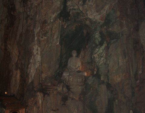 一座溶洞 里面有很多佛像的雕刻 洞里有很多人在这里拜 只是里面的灯光效果还是不会一般的