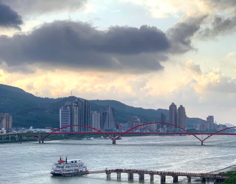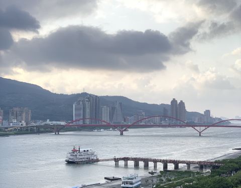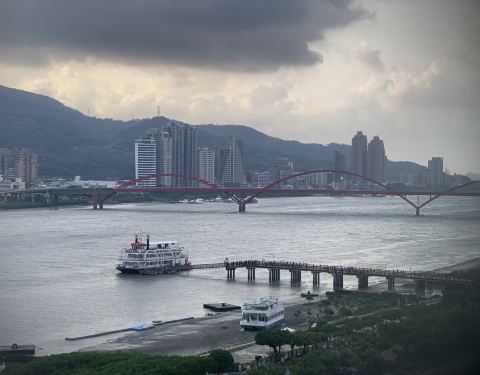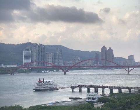 關渡平原上連結北投與八里間重要的交通要道,橋身顏色採用鮮豔的紅色,凌空橫跨淡水河,近看頗具雄偉...