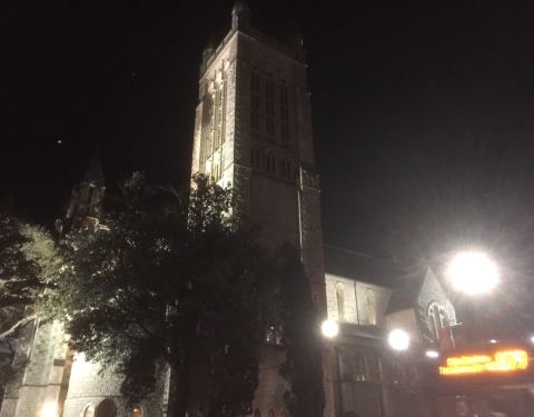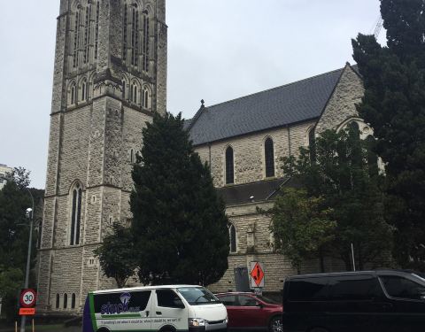 这里离 Sky Tower 很近,步行过去不用5分钟,教堂沿着斜坡而建,灰白色外墙很有诗意,晚上在灯光映照下更是一个美丽的景色。