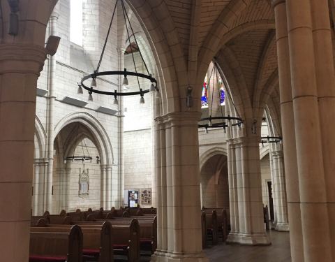 门关着原来以为不能进,结果发现门开着,里面一个人都没有,教堂的花窗很漂亮,门口可以拿明信片还有中文介绍单,出来的时候看到有人准备进去拍婚纱照,商业拍摄需要额外支付募捐费。