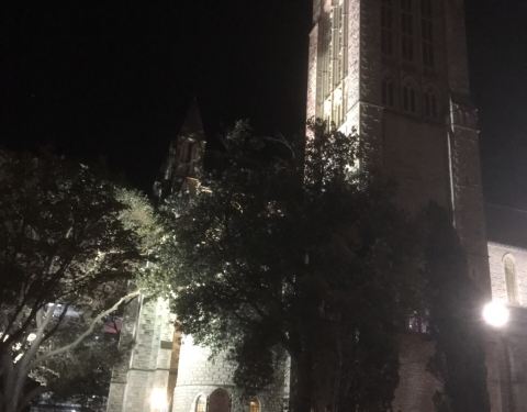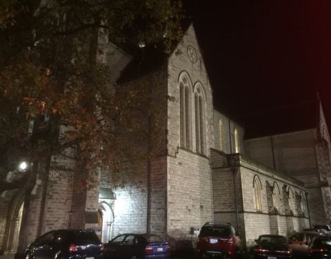 这里离 Sky Tower 很近,步行过去不用5分钟,教堂沿着斜坡而建,灰白色外墙很有诗意,晚上在灯光映照下更是一个美丽的景色。外面鸽子很多。