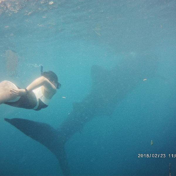 【详情】因为观鲸只能上午,所以游客必须早上6点出发,9点左右到了以后,大概买票+排队10-11点才能下水。虽然一路非常颠簸,花了三个小时过来,可能只能看30分钟,来了之后还要排长队,在太阳下等大约一个小时。但是非常非常非常的值得。到了景点先买票可以浮潜,深潜,或者直接在船上看都可以,每种是不同的价格。浮潜好像是1100P,还可以在柜台租水下相机。500P,租了以后船夫就会给你拍照。买完票可以在卖票的地方换好衣服,然后就会被安排到岸边进行排队等待,这个时候也会有相关工作人员讲解。不能涂防晒霜,不能开闪光灯,不能触摸鲸鲨,不能在鲸鲨的尾巴附近等等。