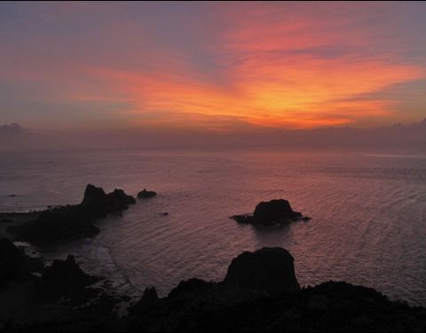 沿绿岛环岛公路逆时针行驶约10公里至海参坪,可看到一个宽阔的观景平台,从观景平台沿一由石板铺就的两旁建有栏杆的长约三百米的步道,能够深入到海边岬角悬崖上的观海亭。从远处看,这条三百米长的步道极似依山势而建的万里长城,所以这段步道被称为“小长城”。 因为这里是绿岛的东面,而绿岛又在台湾的东面,这个地方的东面其实就是太平洋了。如果早上沿“小长城”走到海边岬角的观海亭,可以观看到壮丽的日出盛景。