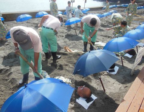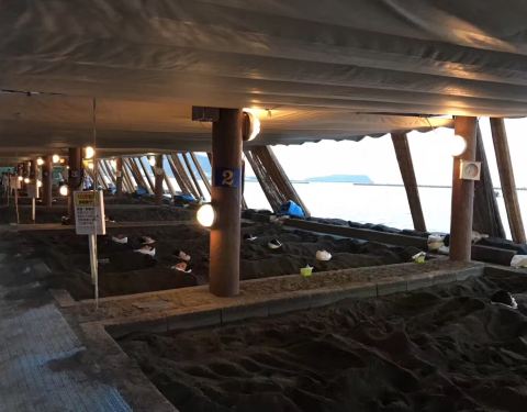指宿特色,日本唯一的天然砂浴!在海边,工作人员会帮忙将沙子盖在身上,慢慢身体就会发热,15分钟左右结束,再去冲个澡泡泡温泉!非常值得体验!