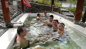 温泉确实是真的,有泉眼,还可以煮蛋,40不到的价格,性价比确实高,但是汤池太少了
