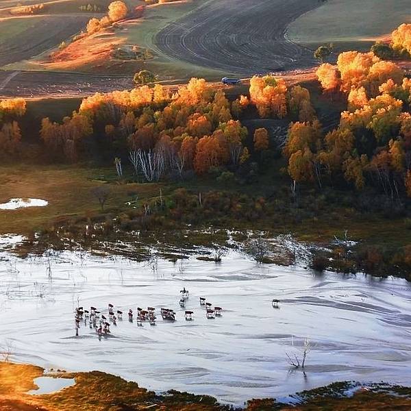 2015年中秋节去的,清早5点多,西拉木伦河源头,当地导游带队去的。拍牛30元,拍马50元,山坡上好几百号摄者交齐款项才放出牲畜群过河。所以乌兰布统秋景虽美但有些地方充满了铜臭气。大门要票,小景也要票。