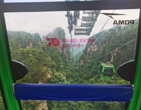 杨家界的索道可能是坐了这么多索道当中最慢的,而且还摇摇晃晃,悠悠哒哒,距离倒是不长,由于杨家界与武陵源其他景区不在一个山顶,必须单独上去