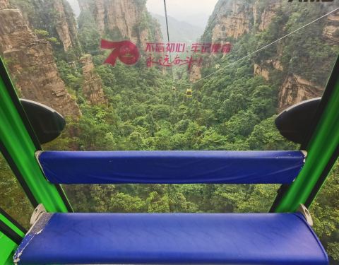 杨家界景区的几个主要景点基本都再维修,所以也没有什么可以玩的,只能直接从杨家界搭索道下去到金鞭溪玩玩,索道现在人不多,我一个人包了一个缆车下山,感觉不错,还可以拍拍沿路的风景。