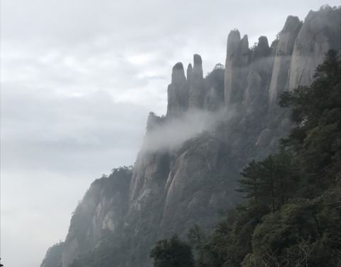 这算是三清山的正面。看上去一排排的山峰特别有气势。不论是早上,傍晚,这里都非常震撼。石头挨石头,山峰连着山峰,大气磅礴。