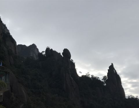 南外溪索道上站处,由一群白玉阁石柱峰并联形成的屏风状三清山入口景观,这里也是一处主要的休息和接待点,更是左往西海岸平缓栈道和右转开始疯狂台阶登山的分道扬镳处1