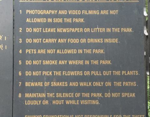 花园是由废弃的场地建成的,是一片绿洲。通常不允许人们去参观这个地方,游客必须参加他们的冥想项目,收取的有一些费用,有金字塔形状的冥想大厅。是浦那最美丽的花园之一,它也被称为纳拉公园。