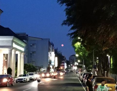 山不高,清华和交大旁边,夜跑人蛮多,弯曲的跑道。好地方。提供自助饮水。春天花应该很多。旁边有座高峰植物园。除了跑道,还有阶梯登山道。上山途中,看到美丽的红月亮。