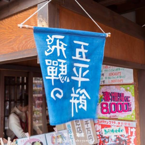 高山市政纪念馆。如果想买特色产品 ,就去这种土产店,当然高山最多的是这种腌菜。高山特产五平饼,其实就是糯米饼刷上咸的酱汁,再在火上烤一下。糯米是甜的,酱汁是咸的,黏黏的,口感很奇特。还有中文介绍,哈哈。之后我们想拍高山城市全景,就去爬山。但是其实爬到山上,也看不到高山全景,主要是不够高,还有很多植物挡着视线。我们拍了几张照片就下山了。在山下一个叫角桑的店,买了牛肉饼吃。牛炸肉饼是300日元,牛炸薯饼是250日元。日本炸物挺多的,也不算油,味道中规中矩。之后就是漫步目的的溜街了。非古街区域,人还是挺少的。途径一个博物馆,我们就进去看了看。