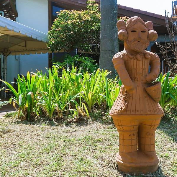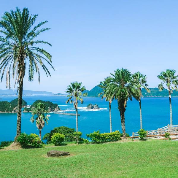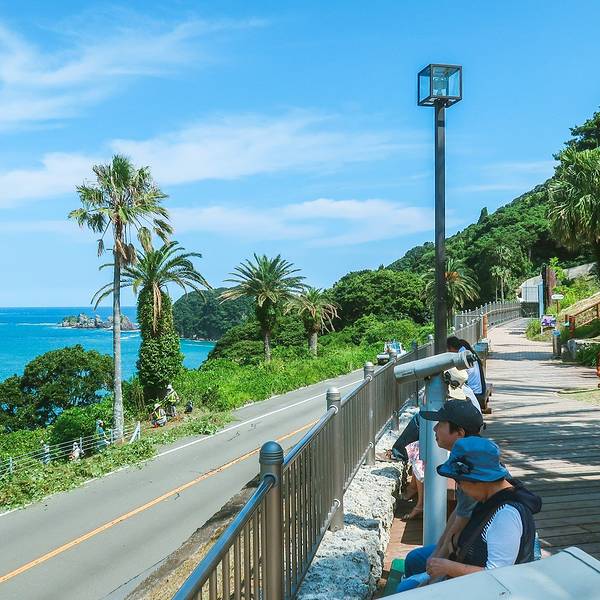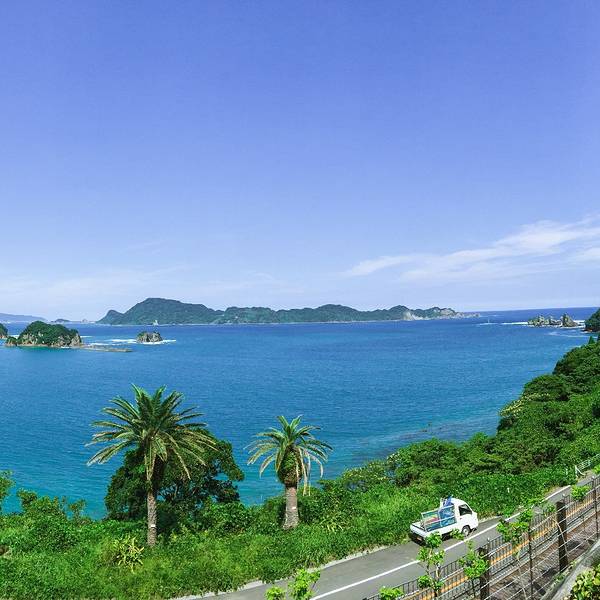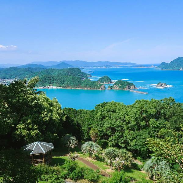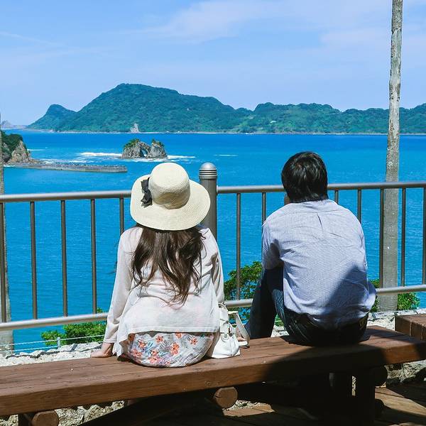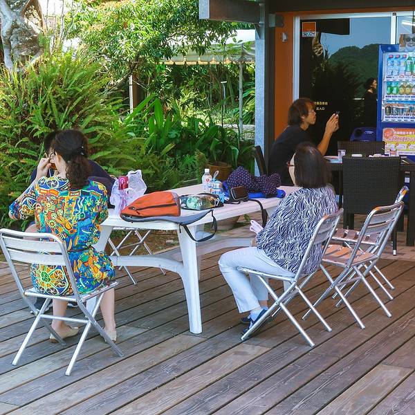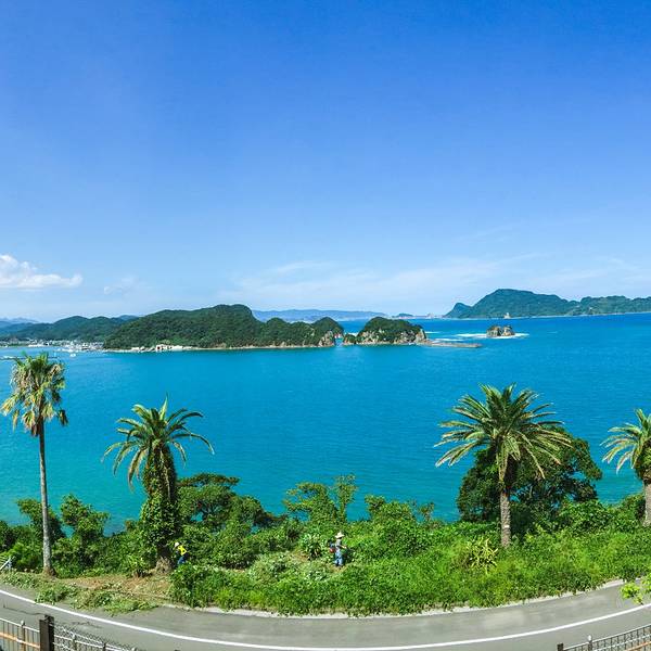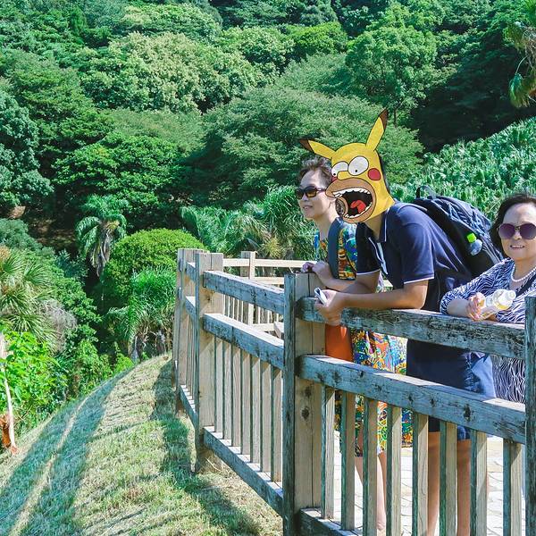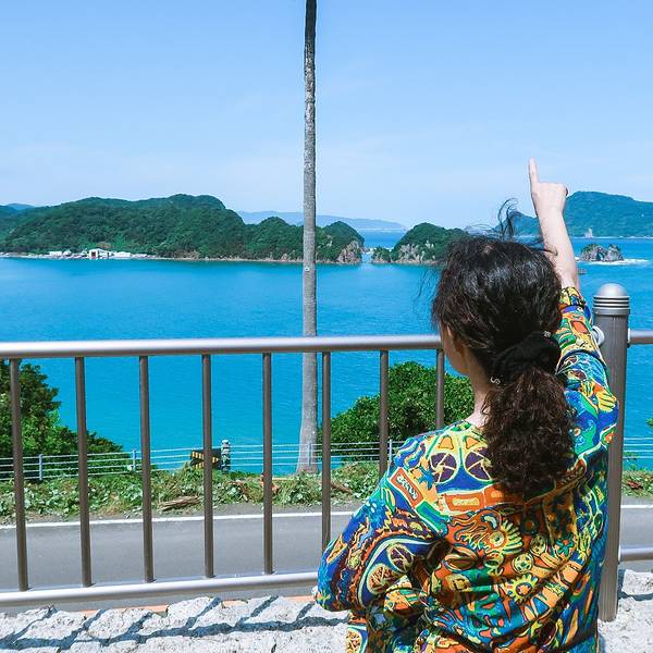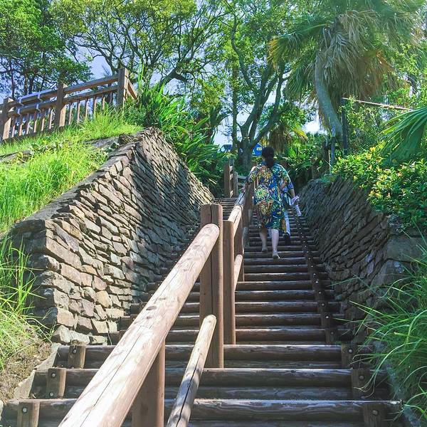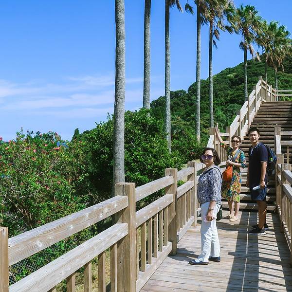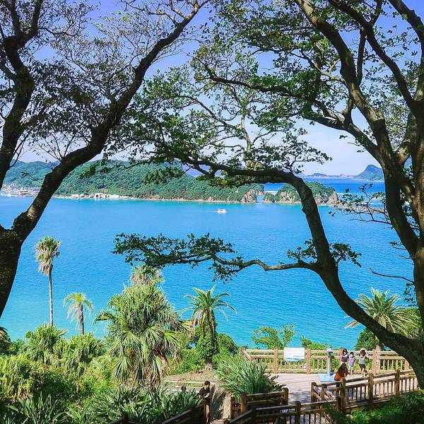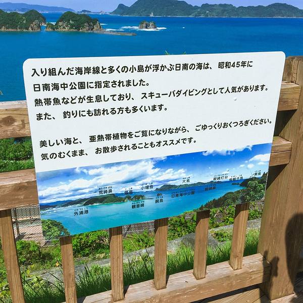 道の駅なんごう(亜熱帯植物園)▼ 看到风景的一刻,一切都是值得的,此处省略1千字抒发感情,看图自己想象吧。亜熱帯植物園里有个展望台,这里可以休息吃饭。大胖作为这次行程的导航指导刚才的失误让他无暇欣赏美景了,正在更加努力的研究地图~南郷有很多山幸彦,和海幸彦的塑像。山幸彦就是日本第一位天皇神武天皇的祖父,而哥哥海幸彦,就是古代日本南九州地区的原住民——隼人的祖先。海幸山幸号的传说就是他们两个。公园有很多台阶需要一直上坡,带孩子和老人的朋友们就不要一直走到山顶了,挺累的。妈妈们很high~~ ╮( ̄▽ ̄)╭ 风景越来越美大胖此时此刻的心情~▼~( ̄▽ ̄~)在展望台上可以看到各种岛~妈妈们的体力有限,后面上山的道路实在是走不动了,我们决定进行下一个项目,水下观光船。在等巴士到时候猜猜我们遇到谁了? 好心大爷不知道是特意下山来,还是刚巧遇到,他看到我们在等车迎面向我们走来。 “#¥@#¥@¥¥%#¥”(大胖翻译说:大爷问我们路是不是不好走,很远,还顺利找到了吧!) 原来大爷是担心我们迷路特意过来问问是不是还顺利,我们再次向大爷表示十分感谢,并且告知我们是中国人,很谢谢他的帮助。妈妈们也很感慨日本人的这种淳朴热情,虽然素不相识但是真心的想要帮助你。