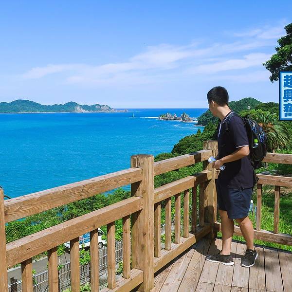 道の駅なんごう(亜熱帯植物園)▼ 看到风景的一刻,一切都是值得的,此处省略1千字抒发感情,看图自己想象吧。亜熱帯植物園里有个展望台,这里可以休息吃饭。大胖作为这次行程的导航指导刚才的失误让他无暇欣赏...
