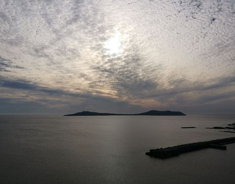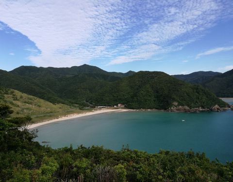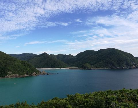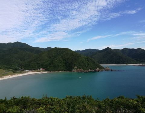 城岳展望台在日本长崎五岛,是一个俯瞰美丽的五岛的好地方。整个海滩是白色的,海的颜色是蔚蓝色,绿颜色的,非常靓丽。展望台上面还有一尊石头的观音,守候着这片海域的安宁。