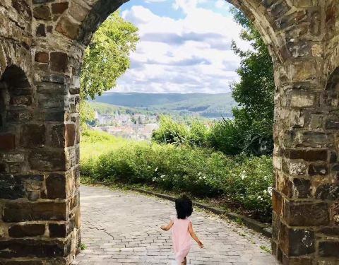 建於近千年前的山頂雄伟古堡Arnsberger Schloss 如今只剩下废墟了时间与战争会摧毀一切。在山顶上心旷神怡地俯視著下方一个个典型的德国小山村,与好友一起爬山健行不亦乐乎!