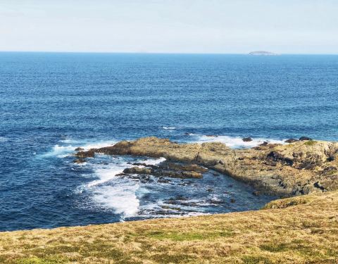 这个Sealy lookout在考夫斯港西侧,据说在这个制高点可以俯瞰整个小镇以及大海的景色,如果在季节上加上运气好的话还能看到鯨鱼。于是我决定自驾前往。山路很长也很难开,从小镇一路过去大概开了半个多小时才到。那里有个伸展出去的大平台,确实可以看到小镇全貌,但大海嘛还是离开太远,更别说是观鲸了,哈哈。