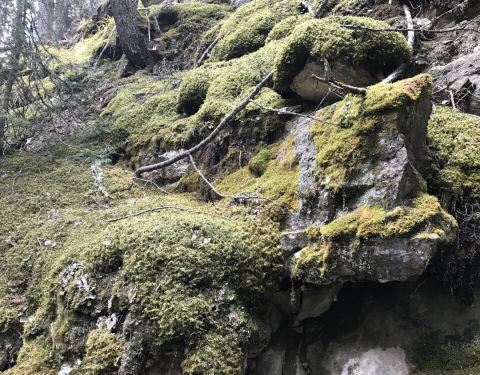 这条徒步小路很少人来的,非常的原始,没有人工修造的痕迹。一路上的景色感觉像原始森林,要高高的大树,参天大树,还有小河流,还有山上面的苔藓,