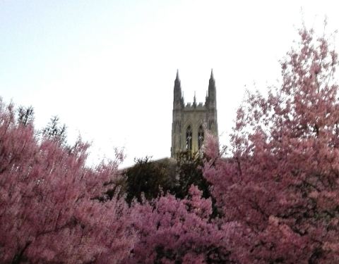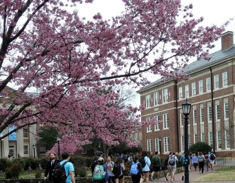 杜克大学,美丽又宁静,传统与现代的结合。春天前往,是最美丽的时节,各种鲜花在花园中绽放,定会令你留涟