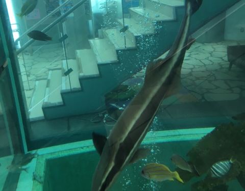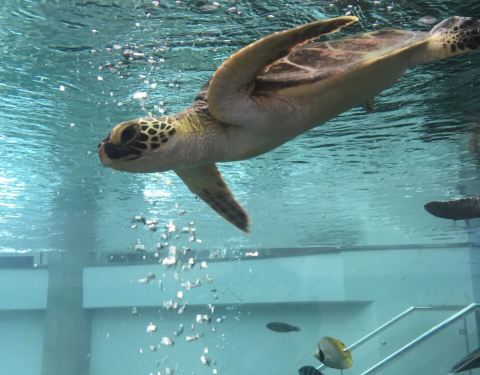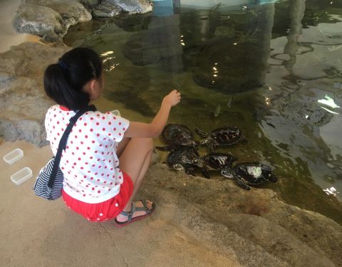 公园里的海洋展示馆是个小型科普加小型水族馆,丫头在里面很开心的喂了海龟