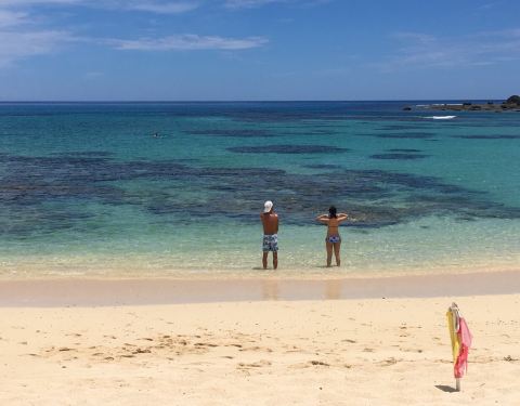 当土盛海岸出现在眼前时,我们全都懊悔无比……因为行程安排在最后离开奄美时对北部(机场附近)各景点做一个包车游,因而已经没有时间能下海了……而土盛海岸之美,让我们大为惊艳……清澈的海水、细腻的白沙滩,海水中比比皆是的鱼儿……对于以后去奄美游览的朋友,建议你们到达后现在机场附近住2晚,把土盛、笠利岬等玩好后再移动到名濑市区。