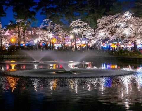 上越的高天公园,最有名的是樱花,夜里的樱花别有一番风情。