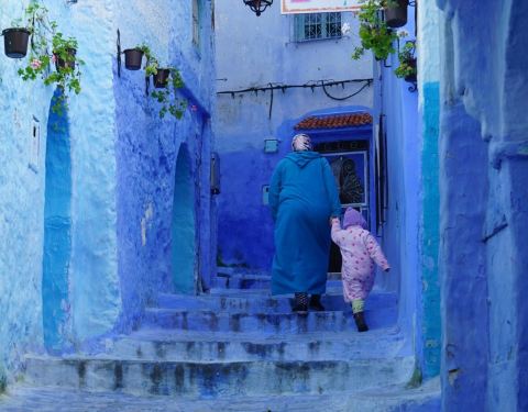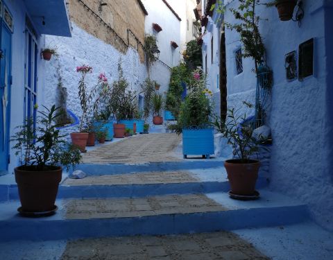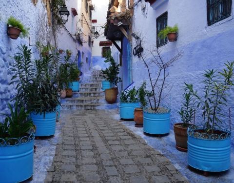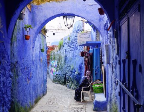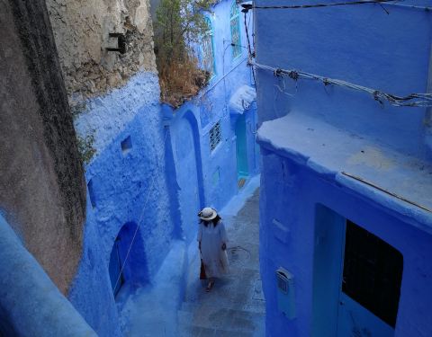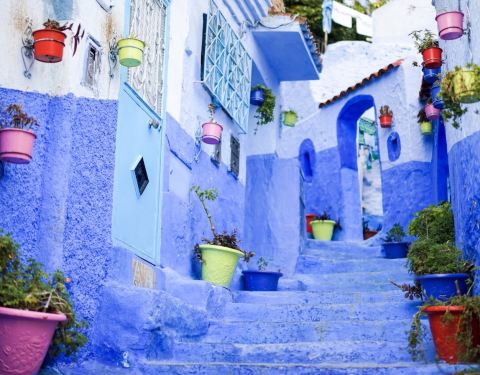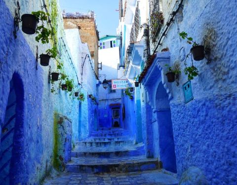 摩洛哥的许多城市都有自己独特的色彩,比如马拉卡什是红色,FES是黄色,而舍夫沙万这个小镇以蓝色为主色调,处处充满了梦幻般的神秘和浪漫。