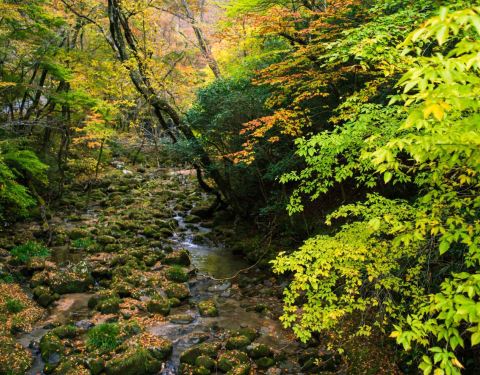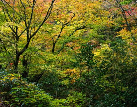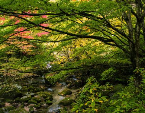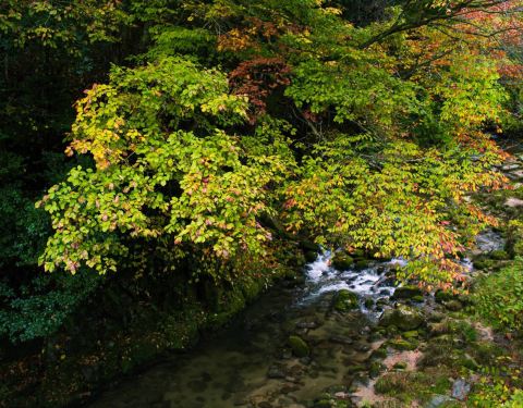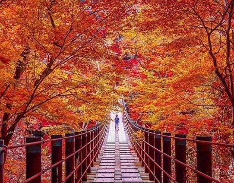 是日本著名的赏枫圣地,有大大小小各式各样的瀑布和流水,最有特色的红叶观赏地点是长约60米的汐見瀑布(汐見滝)大吊桥,沿着桥下流动的花貫河两岸被红叶装饰得满满当当,仿佛一条红叶隧道。除了枫叶季,在其他季节,这里也别有一番风味。沿着花貫川的花貫ダム到津智岳橋之间的美景圣地应接不暇,专门开辟出来的散步道,非常适合徒步旅行。在大自然中深呼吸,感觉整个人都清新起来。值得来,超级赞!