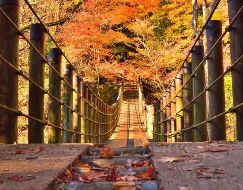 是日本著名的赏枫圣地,有大大小小各式各样的瀑布和流水,最有特色的红叶观赏地点是长约60米的汐見瀑布(汐見滝)大吊桥,沿着桥下流动的花貫河两岸被红叶装饰得满满当当,仿佛一条红叶隧道。除了枫叶季,在其他...
