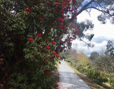 是我们来的时候不对么?这个公园基本没啥可看的,去的当天是阴天,更无光线的美感。 初秋的阴天走在公园的小道上,两侧巨大的不知名南半球植物看上去甚至有点可怕,公园里几乎都是绿植,没有鲜艳的花朵,只在门口礼品店那里看到一些供售卖的杜鹃花? 开放时间:10:00-17:00 地址:The Georgian Rd, Olinda VIC 3788 门票: 免费 交通: 自驾
