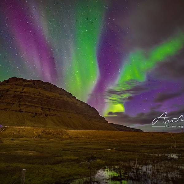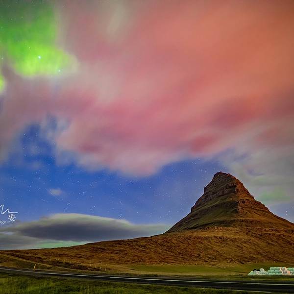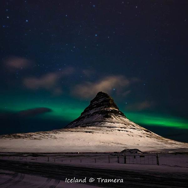 冰岛 的标志性景观之一,草帽山,很幸运在这里还拍到了极光