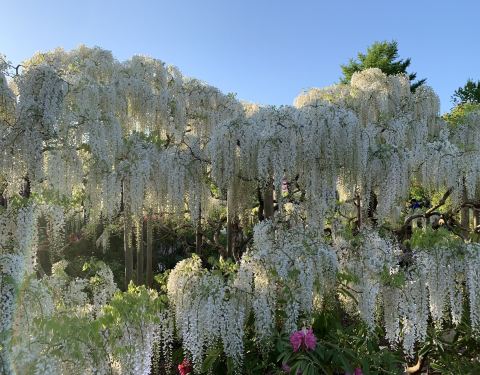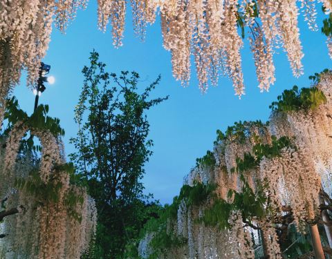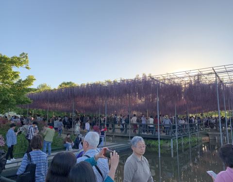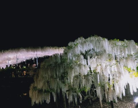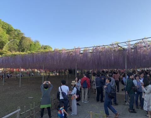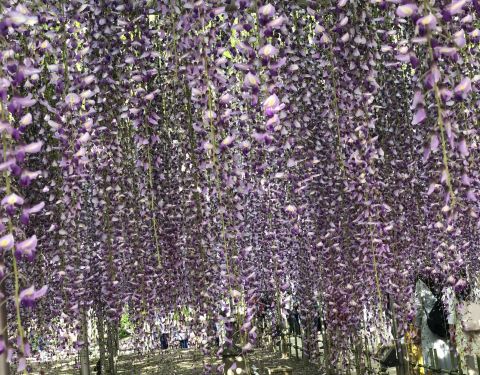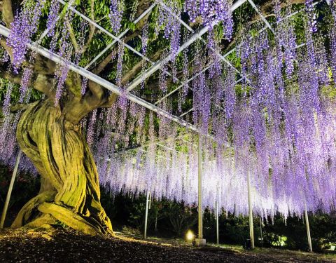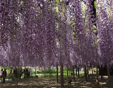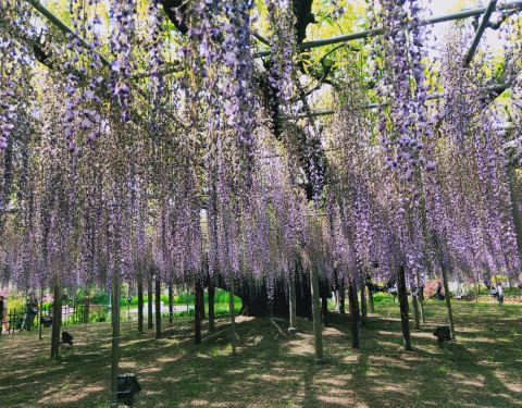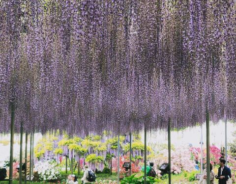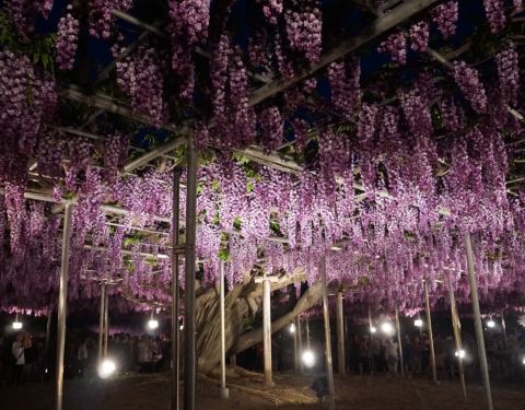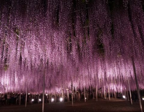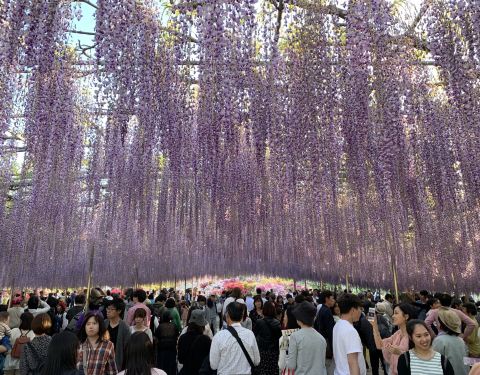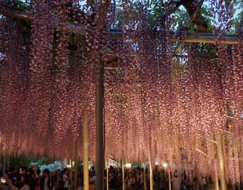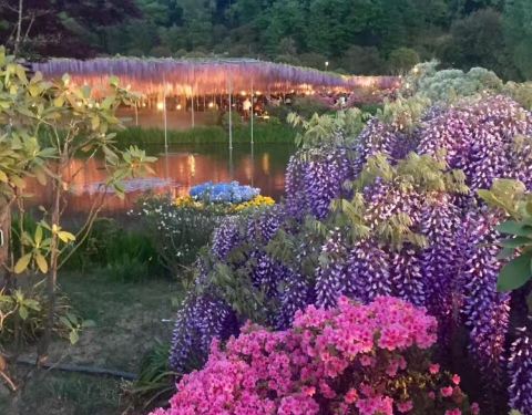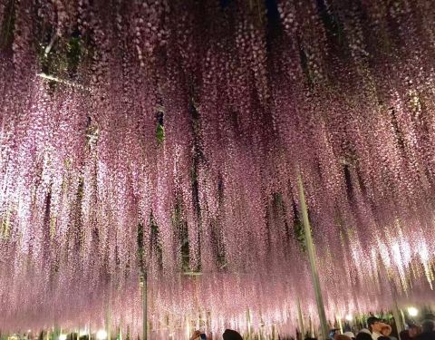 足司花卉公园,我看了三年,还是沒抓準時間!必須在每年5/1到5/10,之前可推到4月底,沒錯,五一大假來这人擠人可以看到最美、最盛開的各色紫藤,這裡紫藤有千年历史了!哪有藤枝干像樹一樣?这裡好多棵丫!!驚人~ 这裡可從東京坐火車过來,出駅後走一下可以抵達,門票可以網上購買,有日光票及夜光票,票价是浮动的,買貴了表示花期正盛,要開心得見最美紫藤