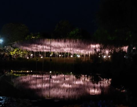 在紫藤旺季,从东京会有直达足利的特急列车,但那是全员指定席的,最好提前2天预约。晚上的紫藤更好看
