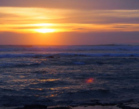 海浪非常的大,非常适合冲浪运动,而且这里的夕阳也是非常的美,因为视野开阔,你可以欣赏到整片壮美的晚霞