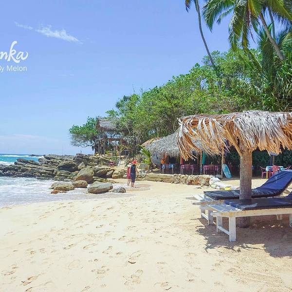【交通】 Goyambokka Beach位于Matara公路南100米处,住在坦加勒的话,直接打个TUTU过来非常方便。坦加勒的沙滩应该有不少个,但是当问到当地人的时候直接就给我推荐了这个Goyambokka Beach,然后还会举起大拇指告诉我这是NO.1。来坦加勒顺便推荐下月光石别墅酒店,从酒店开车到沙滩只要10分钟。 【整体感受】 跟着导航来的话,看到的是一个类似度假村的地方,不要怀疑。直接顺着坡子下去,就是Goyambokka Beach了。度假村里的人都很热情,如果不确定可以问他们,他们也会很乐意告诉你沙滩的位置的。 到了海边,简直就是人间天堂啊!海水真的是湛蓝湛蓝的,沙子也特别的细腻,沙滩上没有一个垃圾,自然风光堪称完美,海天一色。最主几乎没几个人,亚洲人也只有我们一家。整片沙滩任我们玩儿,这就是为什么我放弃美蕊沙,毅然决然的选择坦加勒!这个决定是我整个斯里兰卡行程里面最明智的一个了,这个沙滩简直美爆了,好像被我们承包的感觉~除了在海边玩,沙滩上还有很多可爱的小家伙——寄居蟹,爬的还挺快的呢。礁石凹槽里还有海胆呢,走路的时候要注意,不要一脚踩到洼子里面,后果不堪设想。 这里有礁石、有椰子树还有船只,可以说是风景绝美的情况下,还创造了些拍照的道具,特别适合姑娘在这里拍拍拍~在这里玩水、拍照、嬉戏整整花了我3个小时,已经到达不亦乐乎的境界了。 【游玩tips】 1)沙滩是免费的哦,属于私房景点,但是没有私有化哦,所以放心游玩。 2)想要下海冲浪、游泳的话,一定要记得自己带泳衣,这里的几个小店都没有卖的哦,但是冲浪板是可以租赁的。 3)因为不是那种商业的海浴场,所以也没有专门的换衣服的地方和淋浴的地方。斯里兰卡特别热,所以建议男生、女生如果过来游玩的话,可以把泳衣穿在T恤里面哦,这样穿脱也方便一点。天热泳衣很快就会干的,等玩完回去再洗澡。 4)海边是有几家家庭餐厅,但是不是每天都开门。所以过来前自己准备好食物和水哦~金椰子倒是有卖的,但是只有寥寥几只,卖相一般。要吃要是去水果摊子上买,60卢比一个,超级便宜。 5)沙滩边上有躺椅出租,1500卢比一把。不过都到海边了躺着多没劲啊,当然是到孩子撒欢了,要是热了想要休息,大树荫下有座位,没有人管的,可以乘凉。