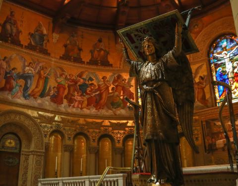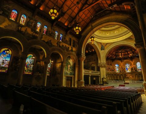 被誉为“斯坦福大学建筑中皇冠上的明珠”,大型的壁画和彩色玻璃的窗户都极具艺术性。