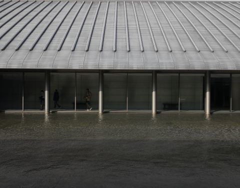 佐川美术馆,滋贺县守山市琵琶湖畔,京都驱车40分钟即到。巨大屋顶采用日本建筑象征性的传统结构悬山顶,被称作“浮在水面上的美术馆”。整体色调是高级灰,安静内敛。