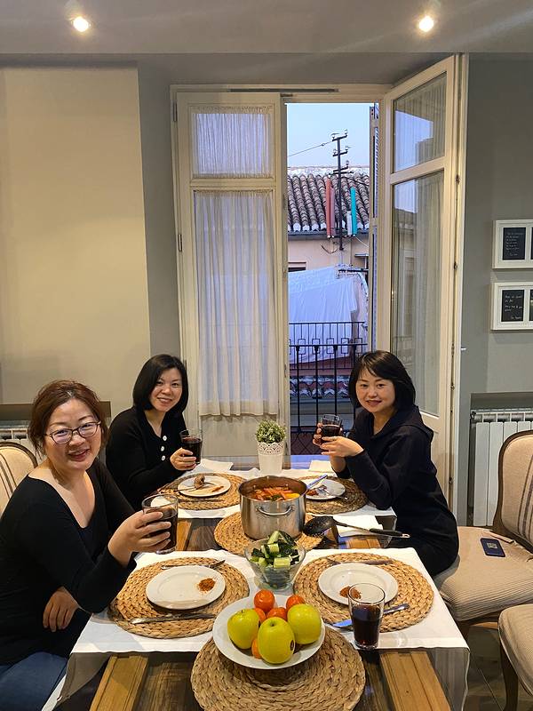 下午3:00我们从龙达离开到格拉纳达,行程有300公里,开车大约3小时,下午6点到达住的民宿,位置极佳,就在格拉纳达大学旁边,窗外就可以看到内华达雪山。从来没想到在安达卢西亚会有雪山,因为一路上阳光灿烂,温度不断攀升,我们一直在减衣服,在路上看到白色山峰的时候,还正儿八经讨论一致认为是石灰岩,几个人太搞笑了。结果查了一下这是西班牙的内华达山脉,山脚下就是格拉纳达市,内华达山脉还是一个颇受欢迎的旅游目的地,是欧洲南部的滑雪胜地。内华达雪山很有格调的客厅开放式的厨房卧室阁楼也充分利用了内华达雪山晚餐