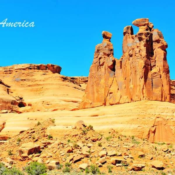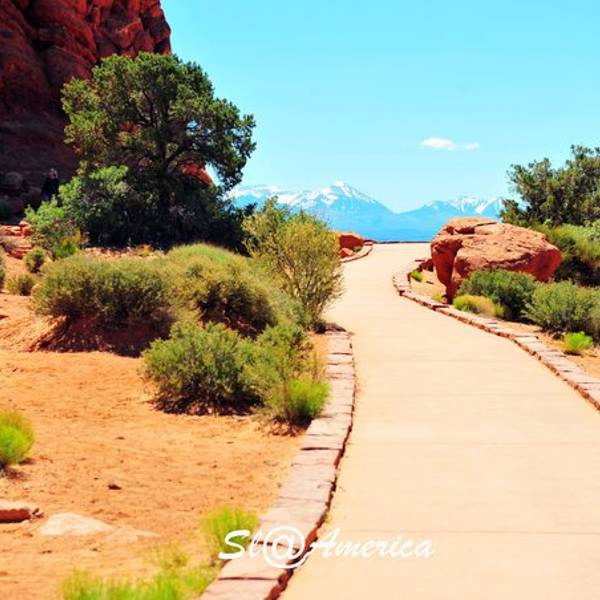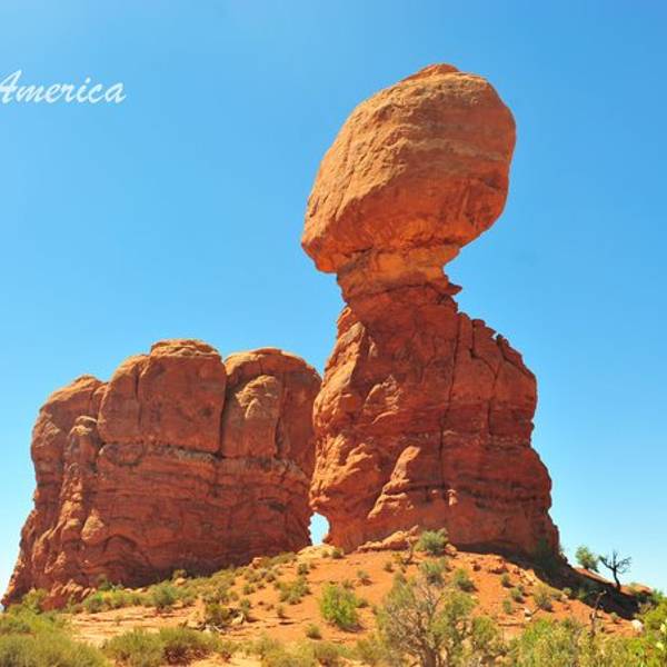 Balanced Rock平衡石景点,据说世界上有不下十处有名的的平衡石,这是游客最多的之一。就在主干道边上,路边停车即可沿着小道参观,大约15-30分钟便可以绕着石头一圈。 平衡石小道周边的景色其实也是很好的,在路的尽头,不远处就可以看到开阔的岩石和雪山,要想把拱门公园里面的奇石看个遍,那绝地是需要很强的体力的。平衡石标准照,身临其境看着更为震撼,因为真的很大的一块石头,仰头望去不由得赞叹自然力量的伟大。平衡石简介
