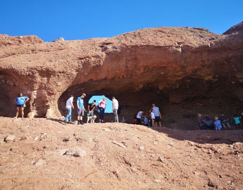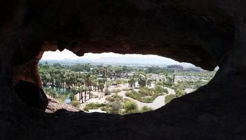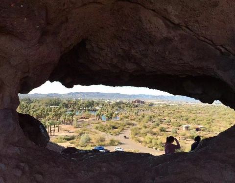 石头中间的洞应该是一个天然形成的景观,这处地貌是通过长期的风化产生的效果,石头很巨大的山上的,来这里游玩需要租车,距离市区很远,都是沙漠地貌的。