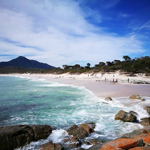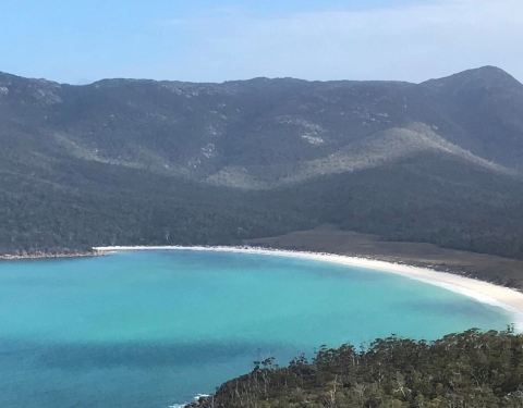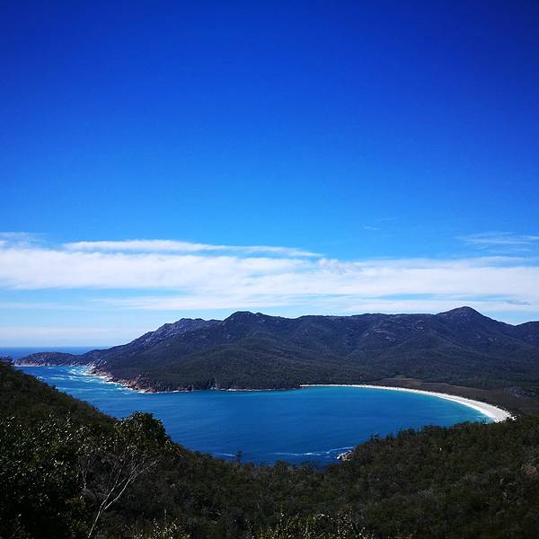 酒杯湾果然没有让我失望,不愧是世界十大美丽海滩,果然是标准明星片的风景昨天下了一天雨,今天终于放晴了,在青旅吃了挺丰盛的早餐之后,继续攀上我们的热血迷你小巴。每天出发都很早,今天大概八点半多我们就抵达酒杯湾Wineglass Bay的入口处了。从停车场爬到酒杯湾的观景台,大概二十...昨天下了一天雨,今天终于放晴了,在青旅吃了挺丰盛的早餐之后,继续攀上我们的热血迷你小巴。每天出发都很早,今天大概八点半多我们就抵达酒杯湾Wineglass Bay的入口处了。从停车场爬到酒杯湾的观景台,大概二十分钟左右,一路上坡,但路况很好,走地挺轻松。