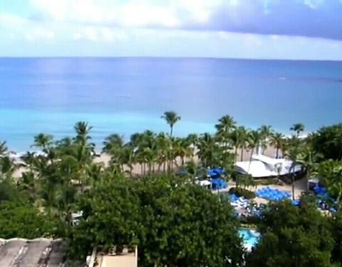 机场就在海滩的背面,所以运气好的话可以感觉背后有一架飞机飞过(虽然不是迎面)。这里的海滩也是浪比较大的,而且比起圣胡安等地的来说有一些礁石,所以更加自然一些。不过当地人沿街的商铺一点也没有热闹的感觉,反倒感觉很惬意平淡
