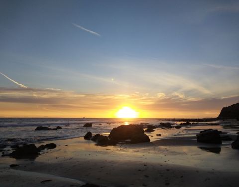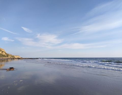 停车收了10刀。海滩一般啦。旁边有一些酒吧。海滩上可以篝火烧烤,得自己带材料。海水比较清澈。落日不错。旁边有个高尔夫球场。周围山的景色也不错。
