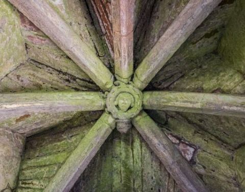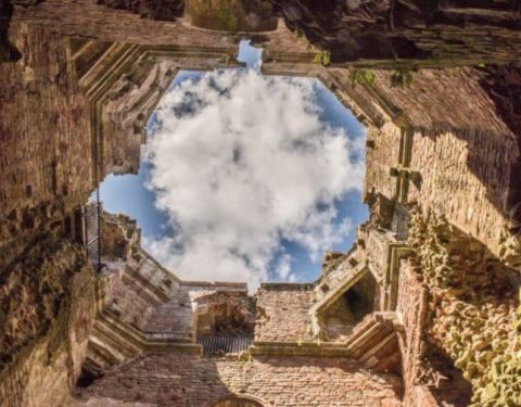 城堡系外部城墙和中央塔楼的结构,有楼梯可以登上塔楼瞭望河谷,农场得风光