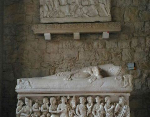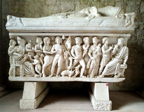 斯普利特考古博物馆并不在老城范围内,离开金门后,一路往北走,穿过国家剧院后面的巷子,大约再步行15分钟。博物馆所属的建筑群由室外围廊和主体建筑组成,从达尔马提亚沿岸发掘的文物大多存放于此。石制文物保存要求并不高,大量精美的石棺雕塑和应该被用于建筑外部装饰的石制浮雕被陈列在室外的围廊内。 有趣的是,博物馆售票处并不在门口的围廊附近,而是在主建筑内,需穿过一个偌大的绿地,主建筑内也是博物馆的主体展馆。古希腊陶器、古罗马玻璃,以及更早年代的骨器被按年代陈列着。同时,大量的历代货币展示也是博物馆的亮点。