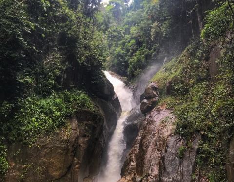 Chiling Waterfall 即 Air Terjun Chiling,马来西亚瓜拉雪兰莪(kuala selangor)当地的华人称这里为“情人瀑布”。这里有一个非常宽阔的停车场,偶尔有人收费,偶尔免费,但也不算太贵。这边景区是免门票的,偶尔有人收取1零吉,到处是是密密麻麻的亚热带植物,拍照非常好看。瀑布不算太壮观,但一层又一层的,非常特别!为了确保游客的安全,瀑布前的公园都会竖立着不同颜色的旗子,以绿色是安全、黄色是有一定的危险、红色已经是危险警号,绝对不要冒险下水。这里还有一座“情人吊桥”有站在桥上可以看到瀑布的全景。往桥的另一端走,是一片浓密的热带雨林,逛完一圈需要一小时,赶行程的朋友可以省略。:)
